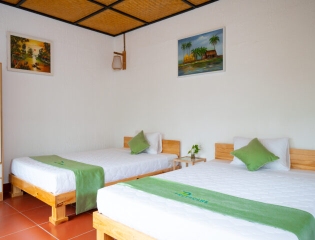 Homestay Thùy Dương 1 is a peaceful hideaway surrounded by lush gardens and fruit trees. You can enjoy the outdoor pool, sipping coffee in the sunny yard, or relaxing in our cozy, sunlit rooms. With a rustic yet comfortable design, Homestay Thùy Dương is the perfect blend of nature and comfort – ideal for families, couples, or friends seeking a true countryside escape.