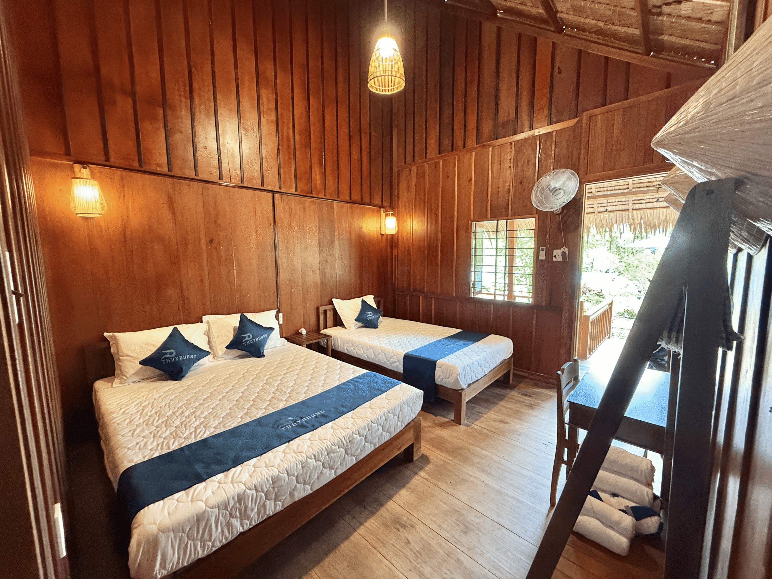 Un homestay très confortable avec des hôtes chaleureux , souriants et très attentionnés. Les repas sont délicieux . Les lieux sont entourés d’arbres fruitiers comme les papayers et les jacquiers. La balade en moto et en bateau est agréable. Un bel endroit où nous serions restés volontiers plusieurs jours..